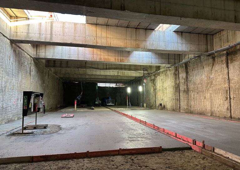 Zusammen mit unseren Bauüberwacher*innen vor Ort konnten unsere Kolleginnen und Kollegen aus der Abteilung Planung Tunnelbau und Geotechnik, die für die Planprüfung der Ausführungsplanung verantwortlich sind, den Tunnelrohbau und die Trogbauwerke östlich der Haltestelle Sengelmannstraße besichtigen, welche die Schnittstelle der beiden Baulose darstellt.